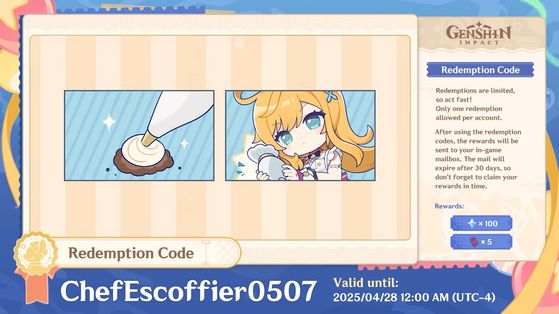 Genshin Impact approche de sa version 5.6 qui sera disponible le 7 mai prochain et elle vous permettra d'enfin avoir les personnages d'Escoffier et d'Ifa. À l'occasion du live de présentation, nous avons pu avoir trois codes à durée limitée. Ils permettent de gagner jusqu'à 300 primo-gemmes gratuitement.