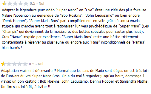 Commentaires de Fans du jeu, déçus de l'adaptation. (Source : Allociné)