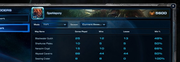 Même si l'impact pour les joueurs peut sembler léger, l'expérience hors jeu de StarCraft II peut se révéler toute aussi importante que celle en jeu. Les statistiques collectées sur Battle.net nous montrent que les joueurs passent environ un tiers de leur temps sur StarCraft II à utiliser les menus en dehors d'une partie. Ça peut être pour parcourir la liste des derniers jeux de l'Arcade, regarder le profil de quelqu'un, consulter l'écran des scores de l'historique, ou juste pour bavarder avec des amis. Pour nous, il est crucial que cette expérience soit aussi fluide et fonctionnelle que possible.