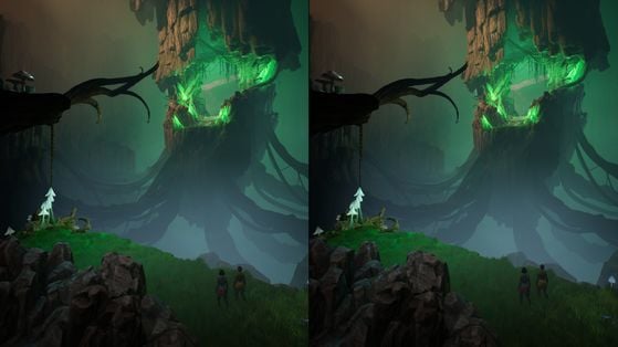 Sur PC, Split Fiction est un peu l'anti Monster Hunter Wilds, puisqu'à l'instar de Kingdom Come 2, on a le plaisir de vous rapporter qu'il s'agit d'un jeu bien optimisé par nos bécanes. C'est devenu suffisamment rare pour qu'on le souligne et attention, le jeu est d'une beauté à couper le souffle, malgré la séparation constante de l'écran en deux. Les environnements présentés sont gigantesques, avec des tableaux qui donnent l'impression de voyager dans de sublimes artworks peints à la main.